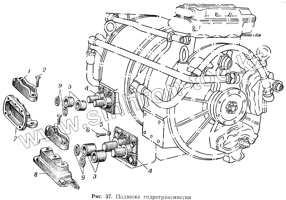 Каталог запасных частей к технике: МАЗ-537. Подвеска гидротрансмиссии
