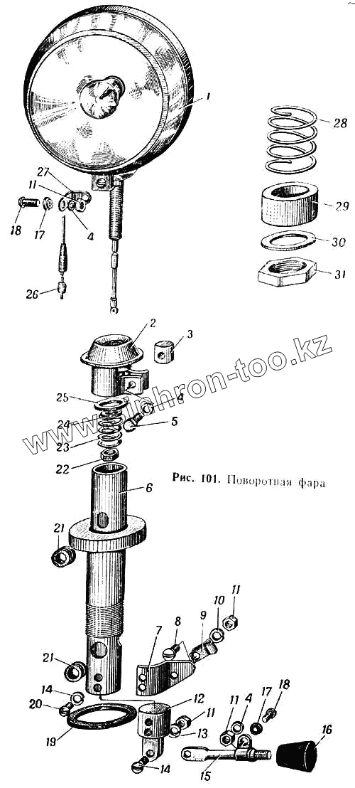 Каталог запасных частей к технике: МАЗ-537. Поворотная фара