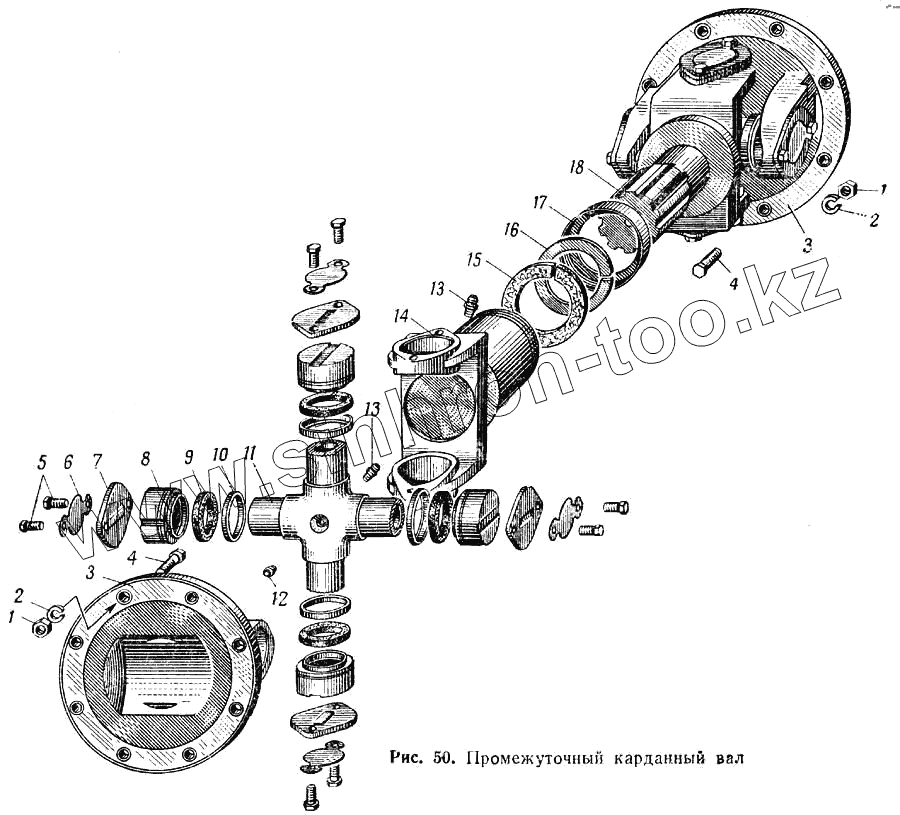 Каталог запасных частей к технике: МАЗ-537. Промежуточный карданный вал