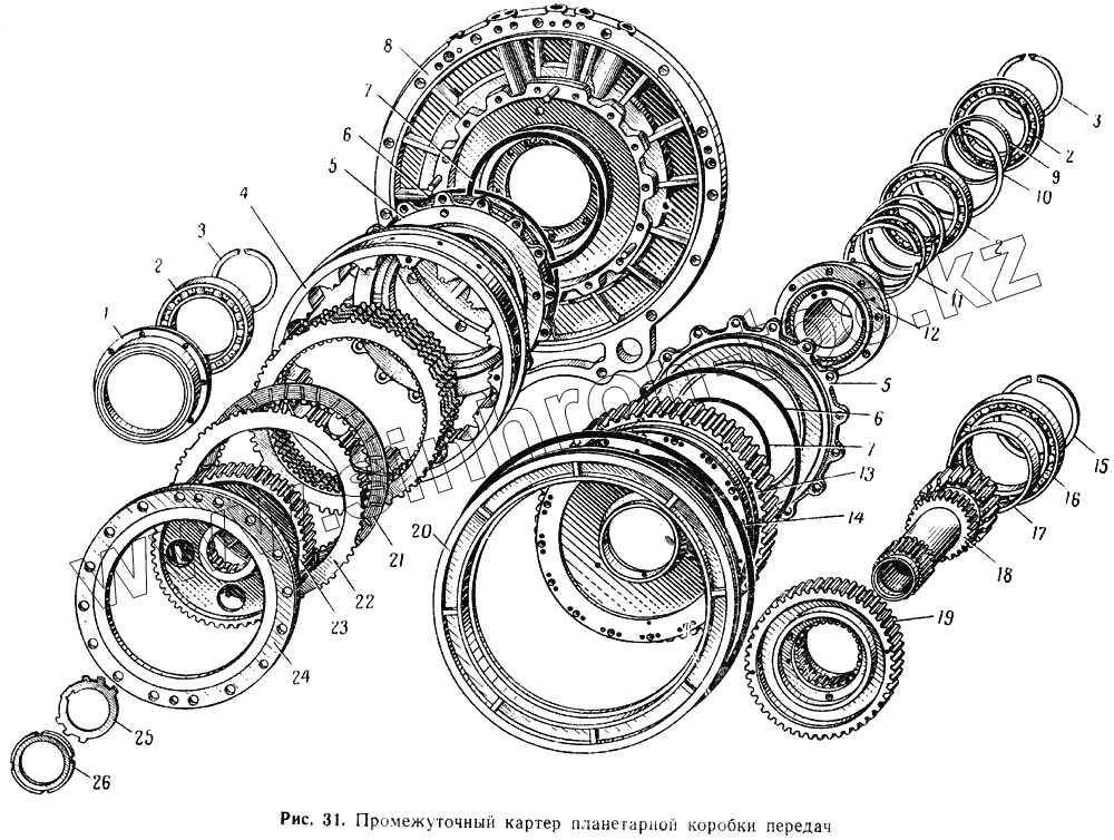 Каталог запасных частей к технике: МАЗ-537. Промежуточный картер планетарной коробки передач