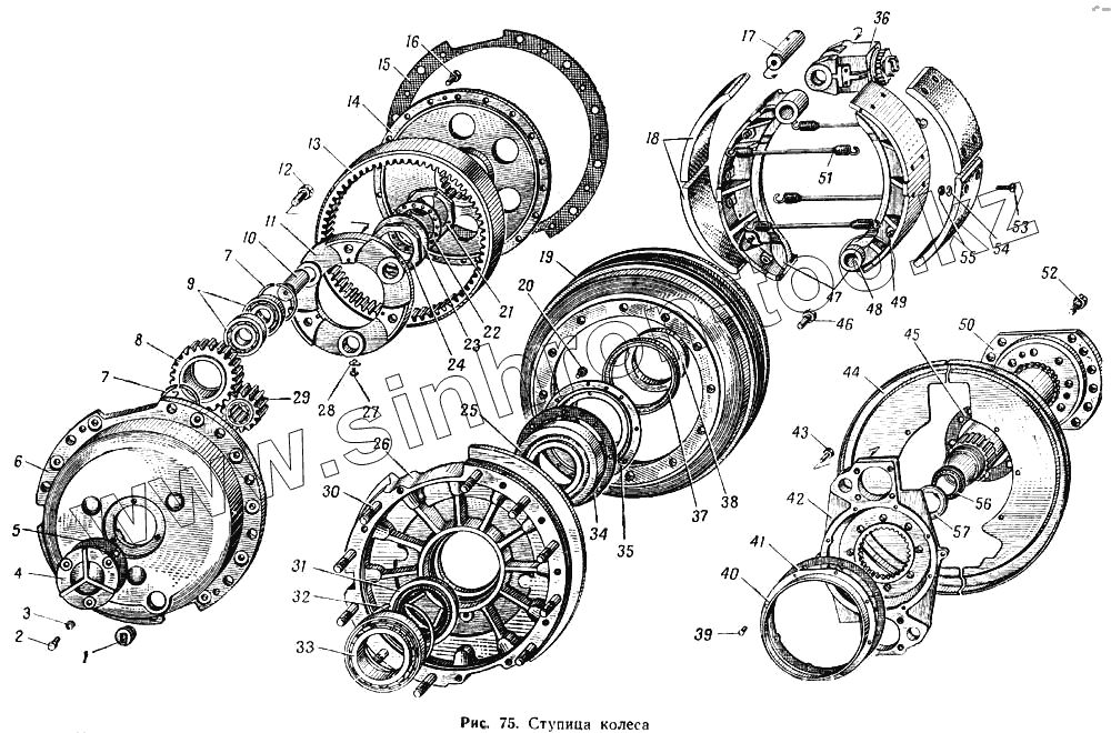 Каталог запасных частей к технике: МАЗ-537. Ступица колеса