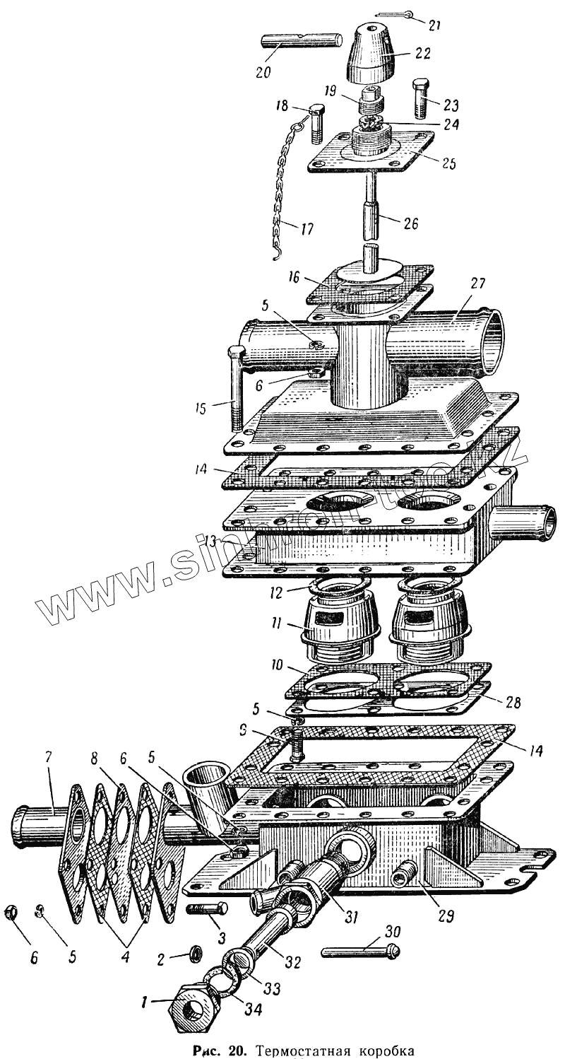 Каталог запасных частей к технике: МАЗ-537. Термостатная коробка