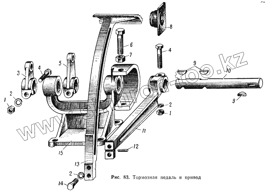 Каталог запасных частей к технике: МАЗ-537. Тормозная педаль и привод