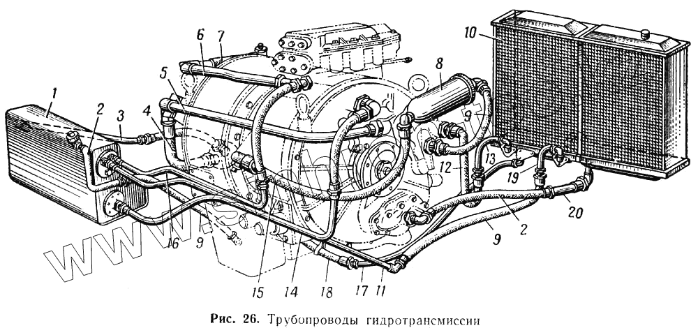 Каталог запасных частей к технике: МАЗ-537. Трубопроводы гидротрансмиссии