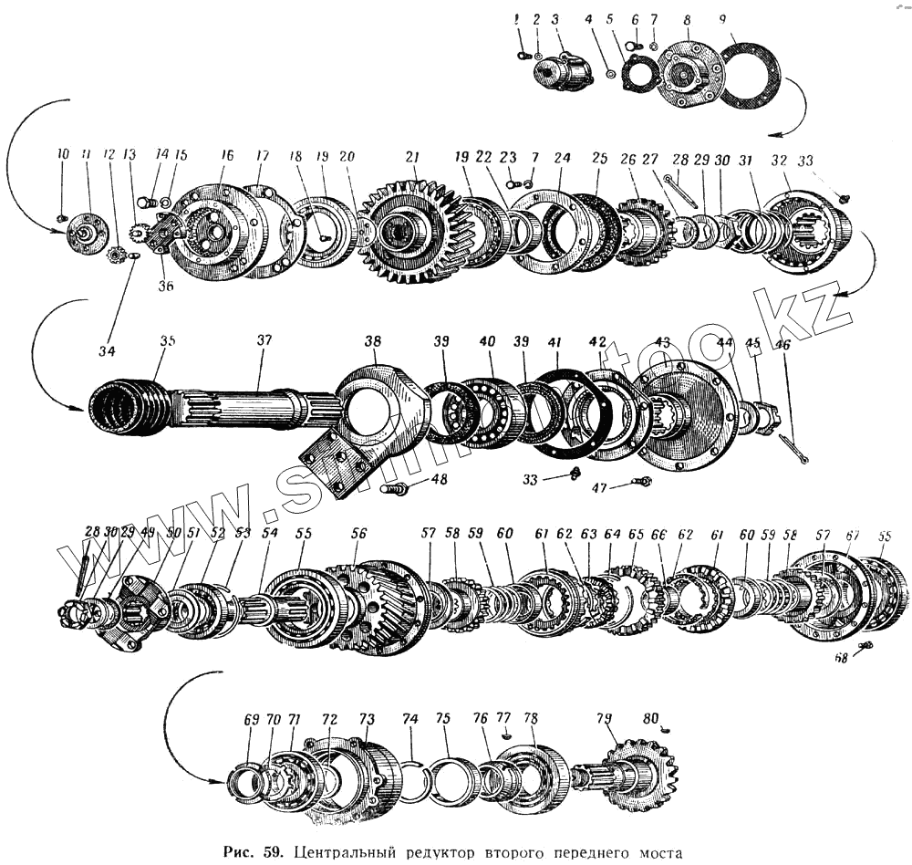 Каталог запасных частей к технике: МАЗ-537. Центральный редуктор второго переднего моста