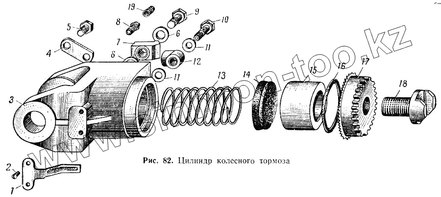 Каталог запасных частей к технике: МАЗ-537. Цилиндр колесного тормоза