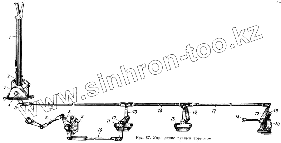 Каталог запасных частей к технике: МАЗ-537. Управление ручным тормозом