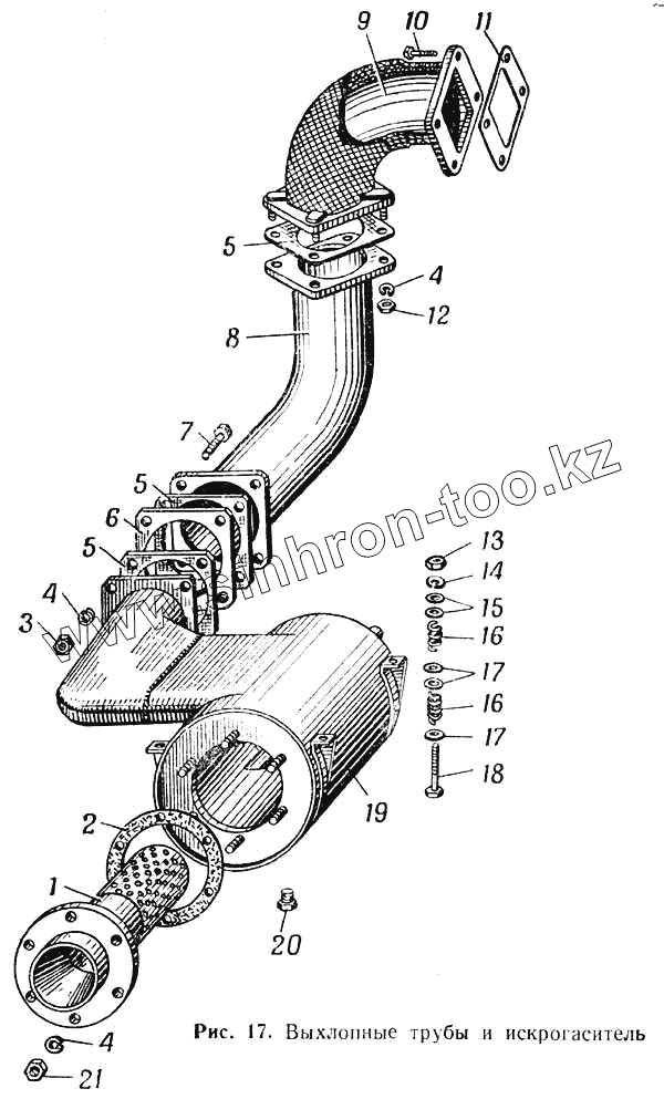 Каталог запасных частей к технике: МАЗ-537. Выхлопные трубы и искрогаситель