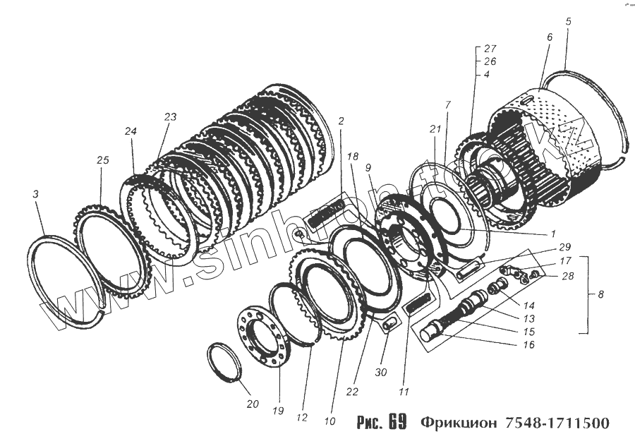Каталог запасных частей к технике: МоАЗ 40481. Фрикцион 7548-1711500