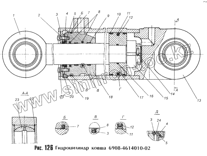 Каталог запасных частей к технике: МоАЗ 40481. Гидроцилиндр ковша 6908-4614010-02