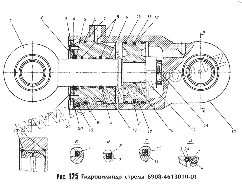 Каталог запасных частей к технике: МоАЗ 40481. Гидроцилиндр стрелы 6908-46130ё0-01