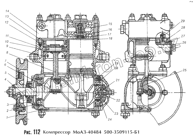 Каталог запасных частей к технике: МоАЗ 40481. Компрессор МоАЗ-40484 500-3509115-Б1