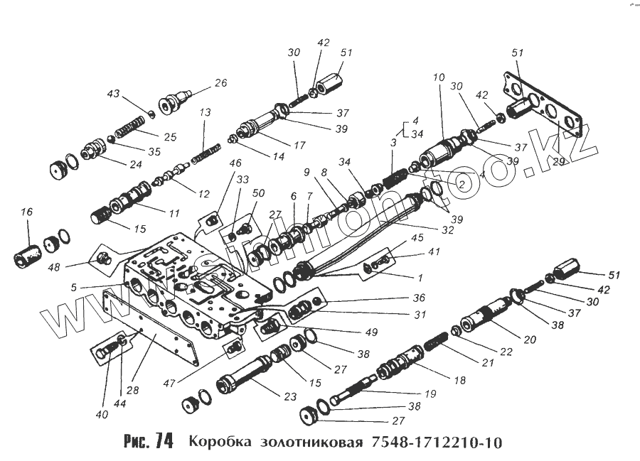 Каталог запасных частей к технике: МоАЗ 40481. Коробка золотниковая 7548-1712210-10