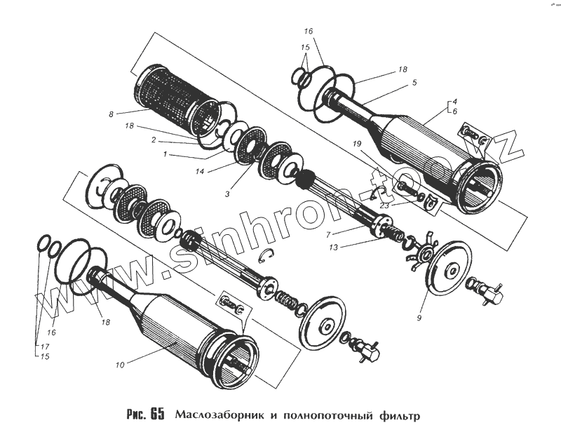 Каталог запасных частей к технике: МоАЗ 40481. Маслозаборник и полнопоточный фильтр