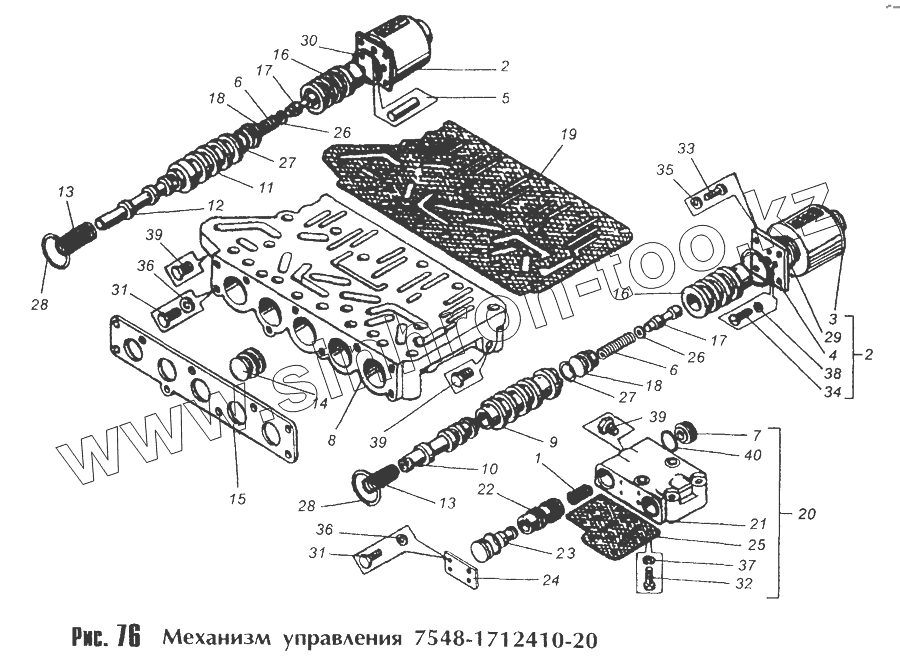 Каталог запасных частей к технике: МоАЗ 40481. Механизм управления 7548-1712410-20