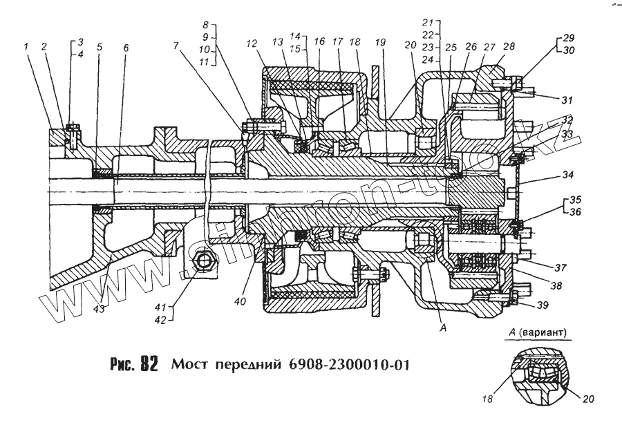 Каталог запасных частей к технике: МоАЗ 40481. Мост передний 6908-2300010-01