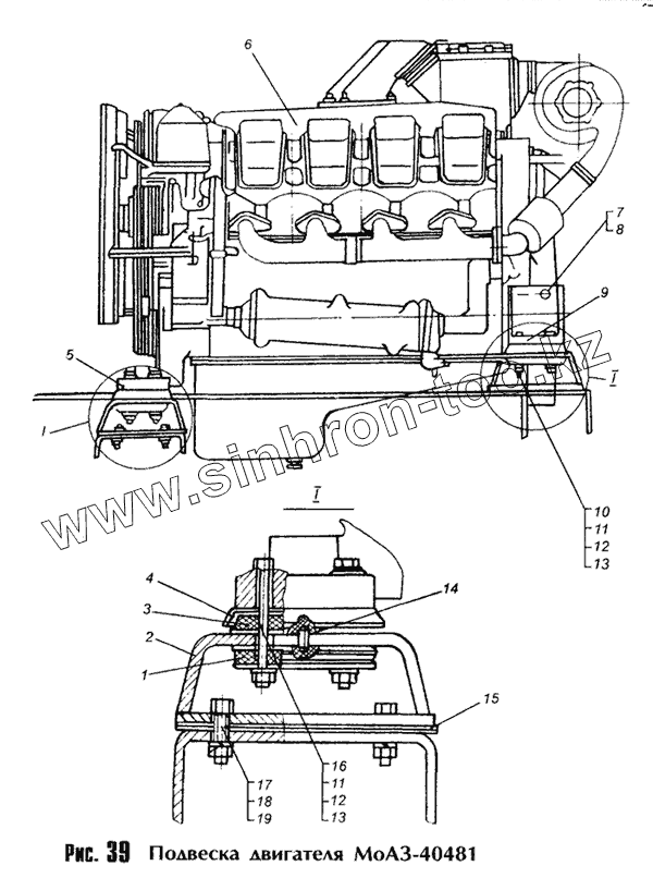 Каталог запасных частей к технике: МоАЗ 40481. Подвеска двигателя МоАЗ-40481