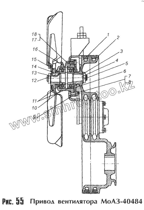 Каталог запасных частей к технике: МоАЗ 40481. Привод вентилятора МоАЗ-40484