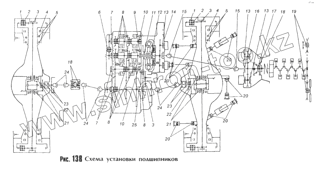 Каталог запасных частей к технике: МоАЗ 40481. Схема установки подшипников