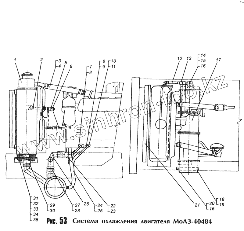 Каталог запасных частей к технике: МоАЗ 40481. Система охлаждения двигателя МоАЗ-40484