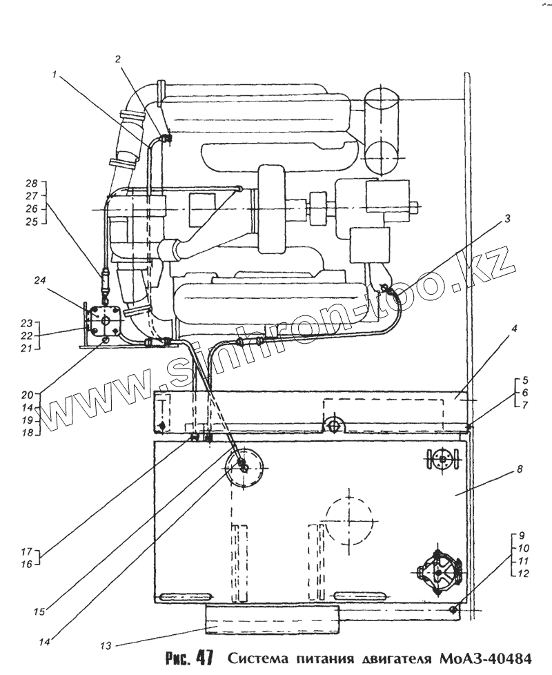 Каталог запасных частей к технике: МоАЗ 40481. Система питания двигателя МоАЗ-40484