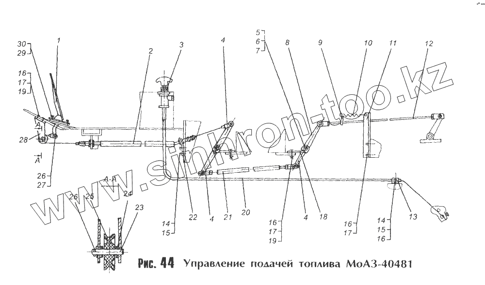 Каталог запасных частей к технике: МоАЗ 40481. Управление подачей топлива МоАЗ-40481