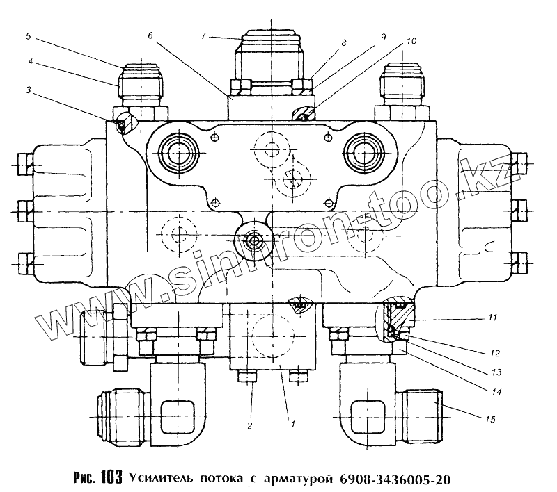 Каталог запасных частей к технике: МоАЗ 40481. Усилитель потока с арматурой 6908-3436005-20