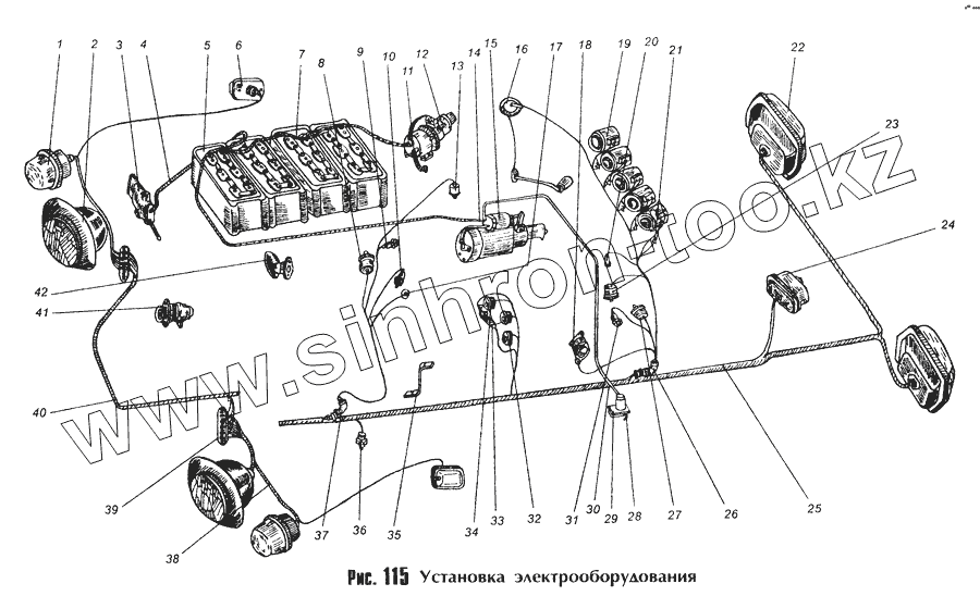 Каталог запасных частей к технике: МоАЗ 40481. Установка электрооборудования