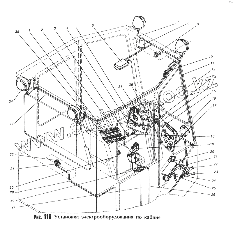 Каталог запасных частей к технике: МоАЗ 40481. Установка электрооборудования по кабине