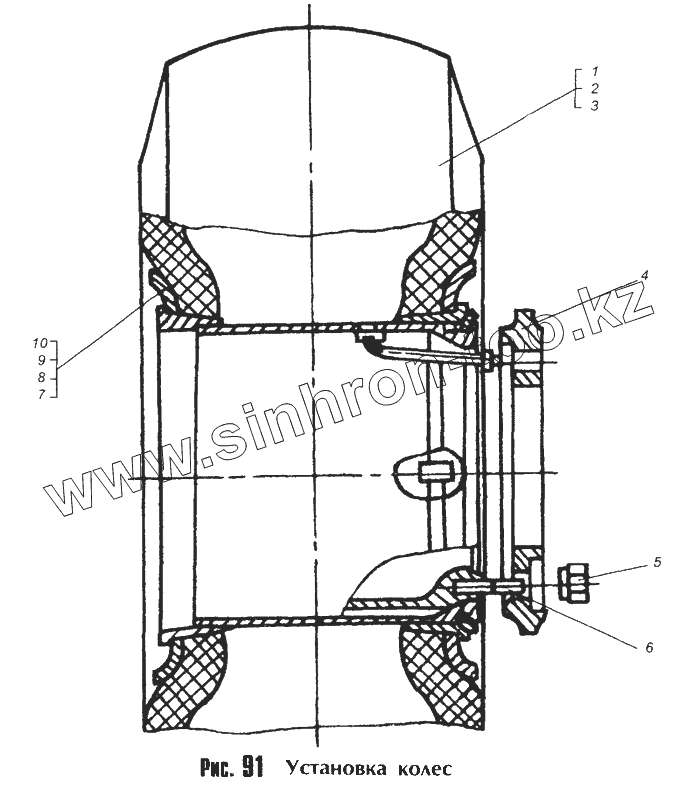Каталог запасных частей к технике: МоАЗ 40481. Установка колес