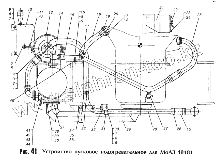 Каталог запасных частей к технике: МоАЗ 40481. Устройство пусковое подогревательное для МоАЗ-40481