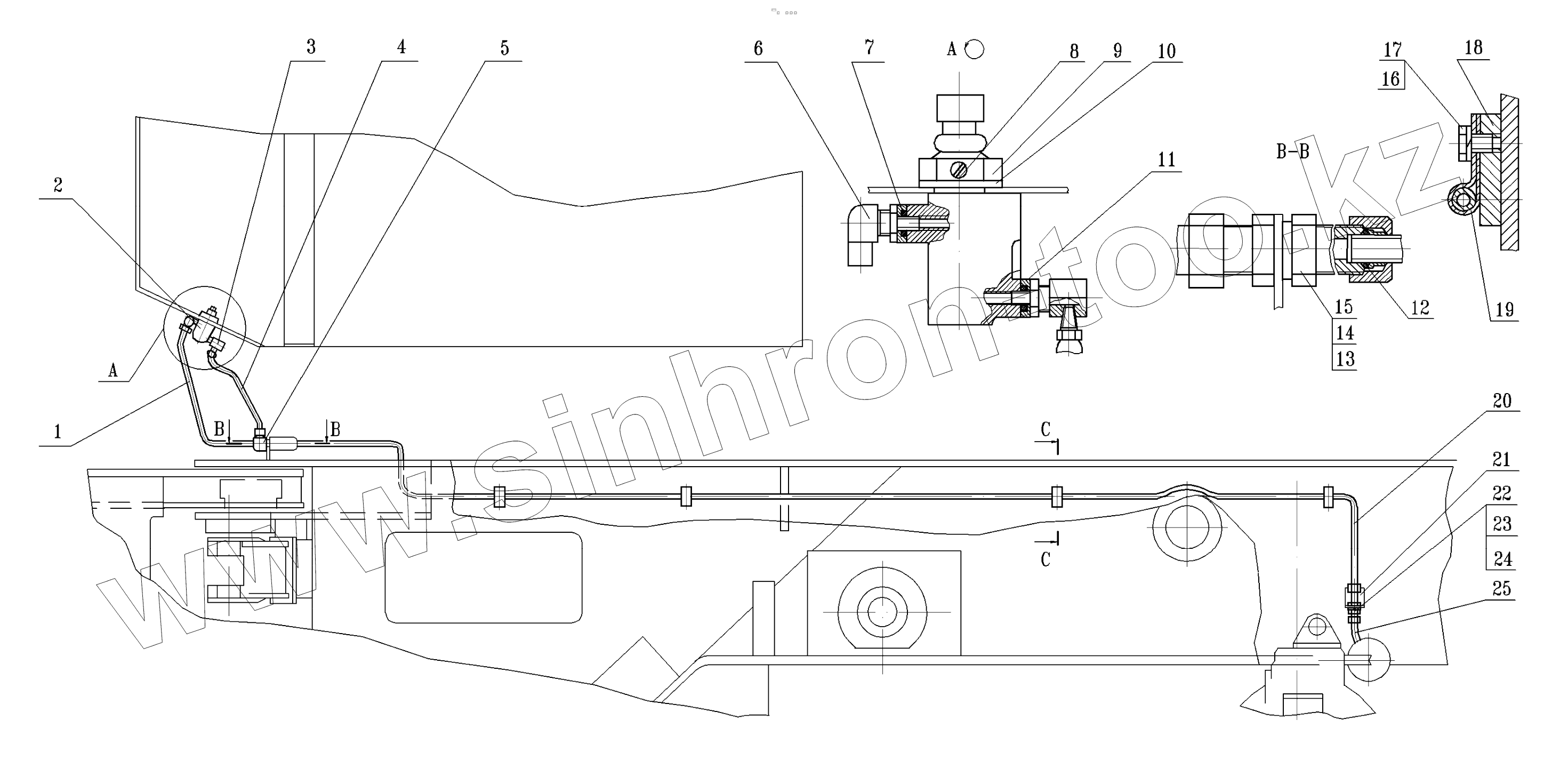 Каталог запасных частей к технике: МоАЗ 40484-21. Пневмопривод блокировки дифференциала заднего моста