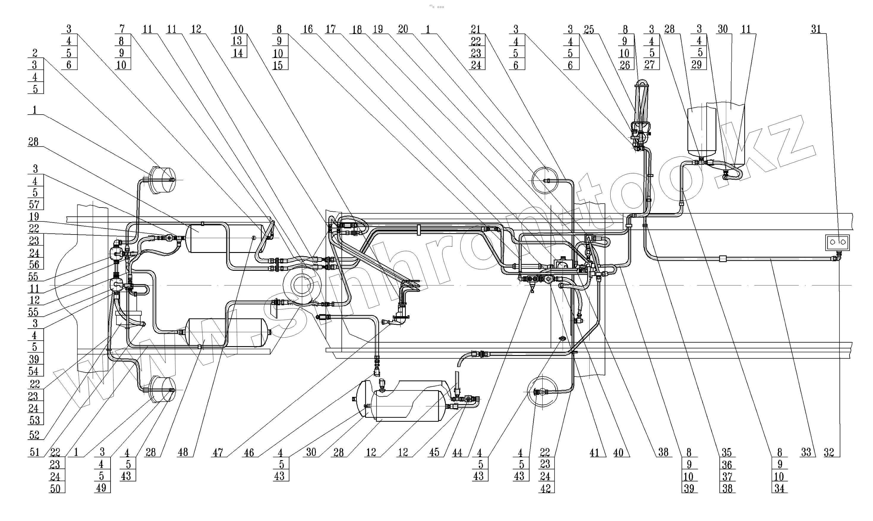 Каталог запасных частей к технике: МоАЗ 40484-21. Пневмосистема привода тормозов