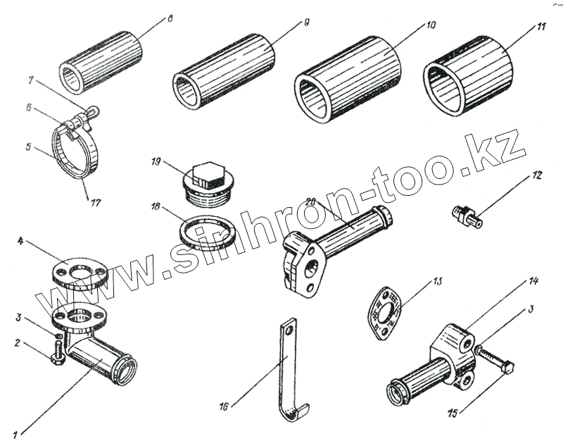 Каталог запасных частей к технике: МоАЗ 6014. Детали установки пускового подогревателя 6442-1000032