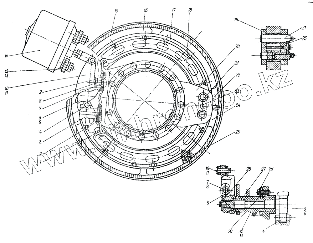 Каталог запасных частей к технике: МоАЗ 6014. Колесный тормоз скрепера 99862-3501000