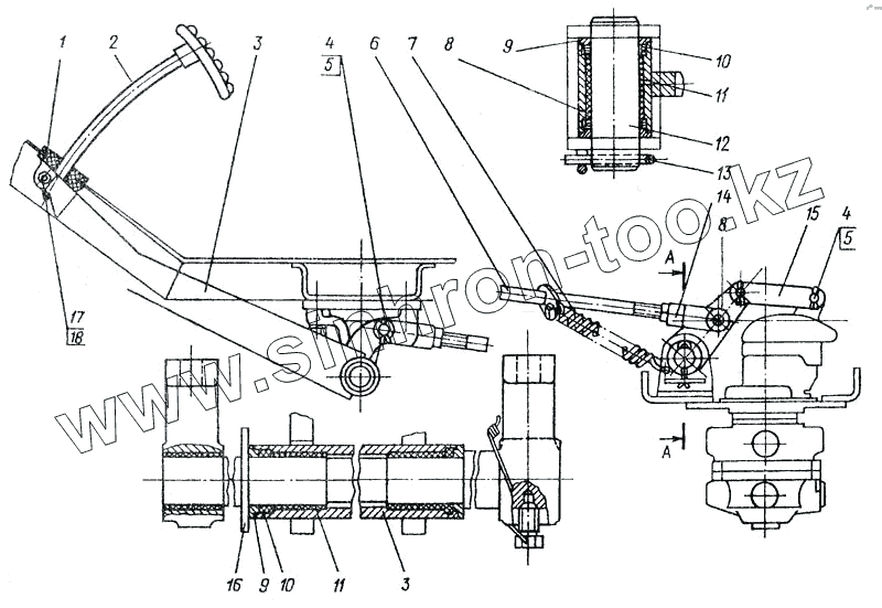 Каталог запасных частей к технике: МоАЗ 6014. Привод тормозного крана 6442-3500032