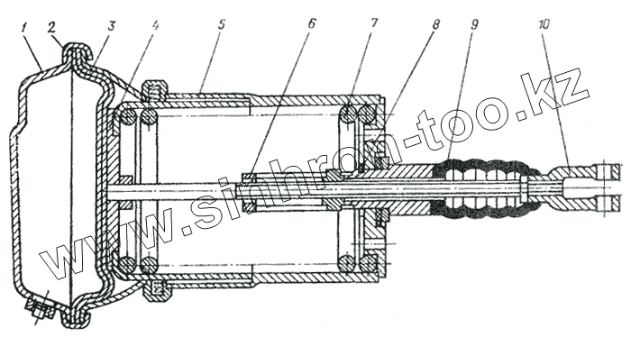 Каталог запасных частей к технике: МоАЗ 6014. Цилиндр с пружинным энергоаккумулятором 7405-3519010