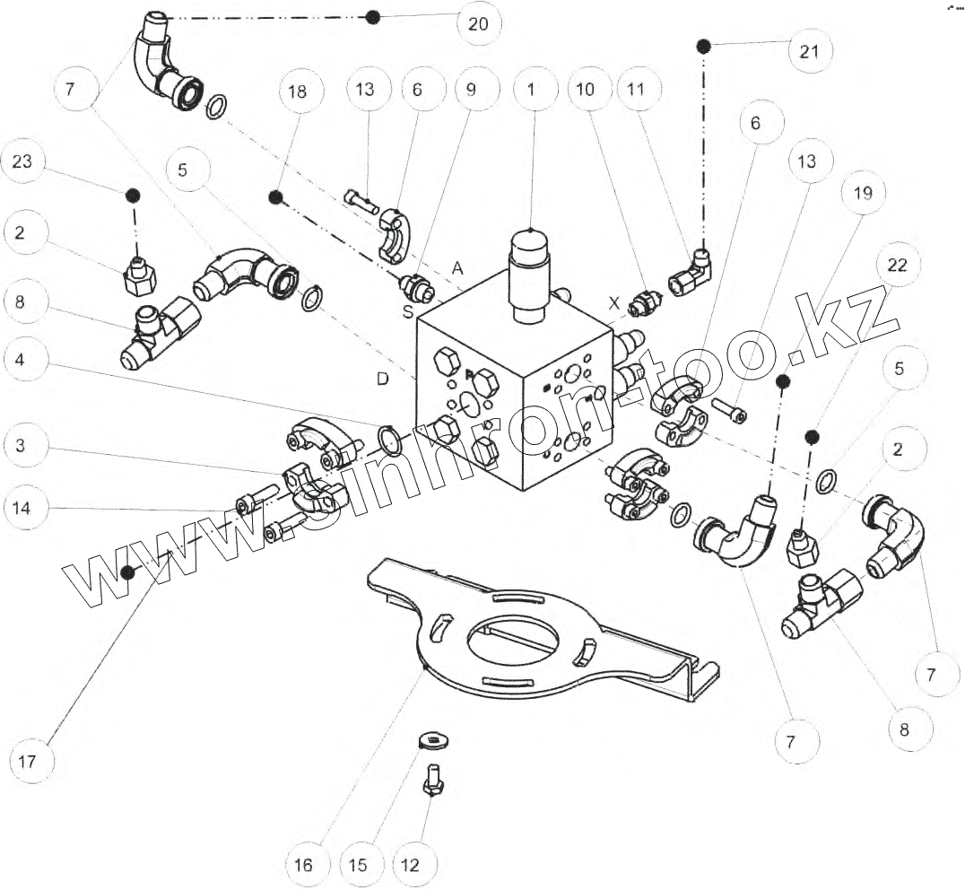 Каталог запасных частей к технике: Мозырский МЗ BELARUS-SAMPO МЛХ46. 15HA Распределитель;Flow divider