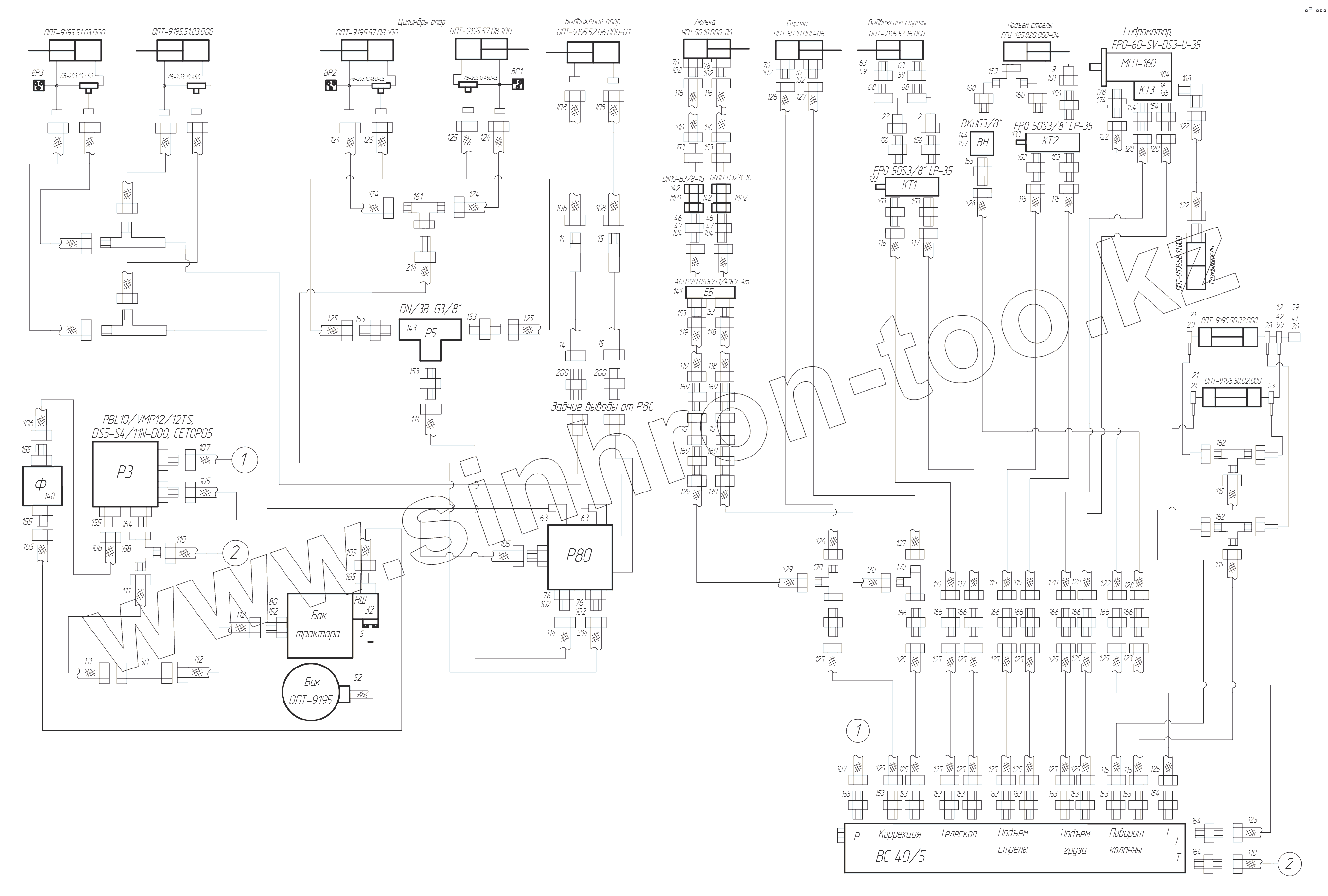 Каталог запасных частей к технике: Мозырский МЗ ОПТ-9195. Гидрооборудование ОПТ-9195.59.00.000