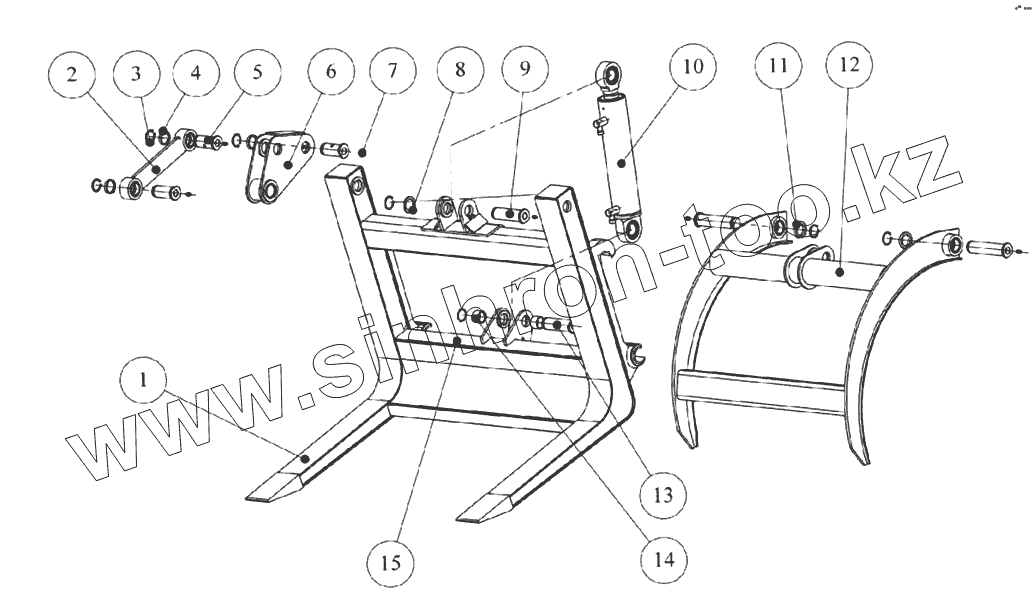 Каталог запасных частей к технике: Мозырский МЗ ПТС-1. Вилы с прижимом ПТС-11.00.000