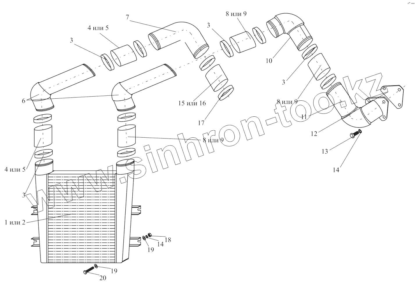 Каталог запасных частей к технике: МТЗ 1502. Охлаждение наддувочного воздуха