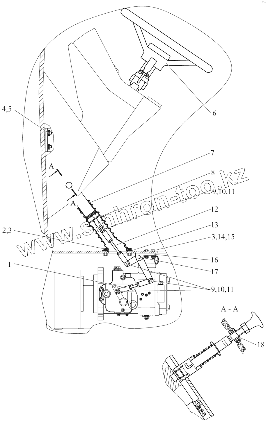 Каталог запасных частей к технике: МТЗ 1502. Привод поворота рулевой