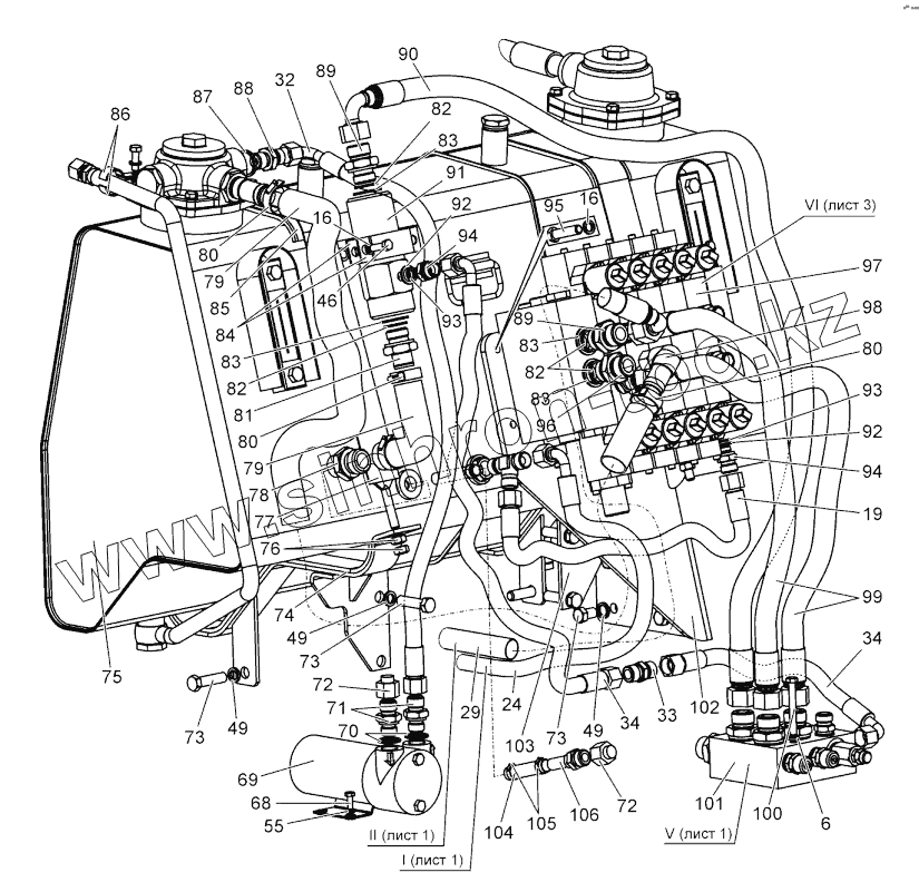 Каталог запасных частей к технике: МТЗ БЕЛАРУС 1502. Гидросистема