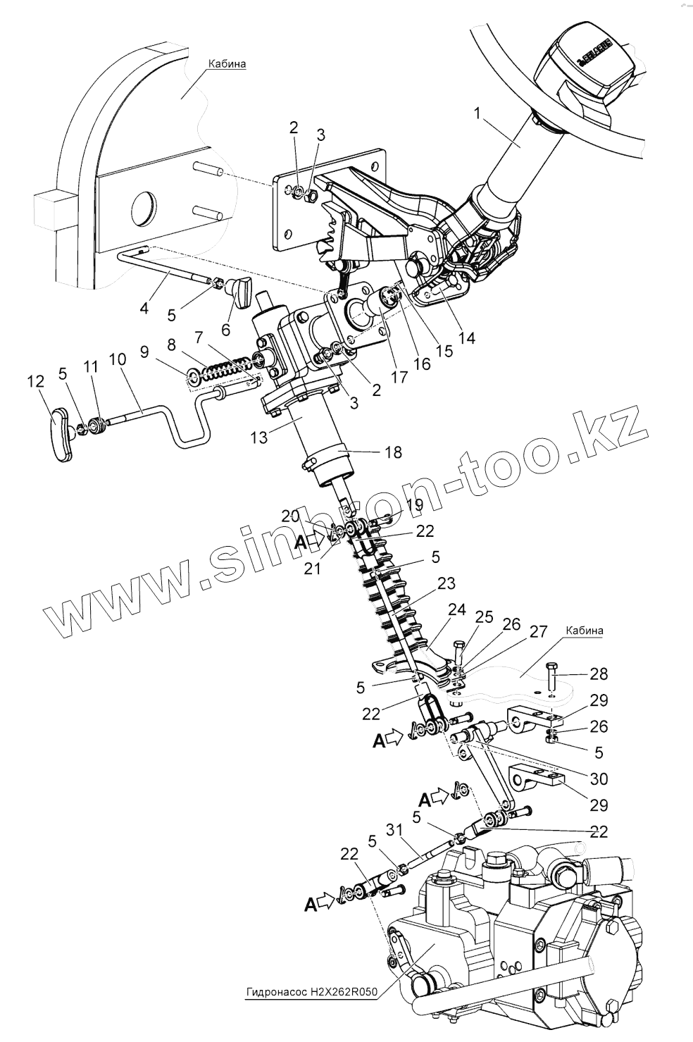 Каталог запасных частей к технике: МТЗ БЕЛАРУС 1502. Привод поворота рулевой. Колонка рулевая. Тяга