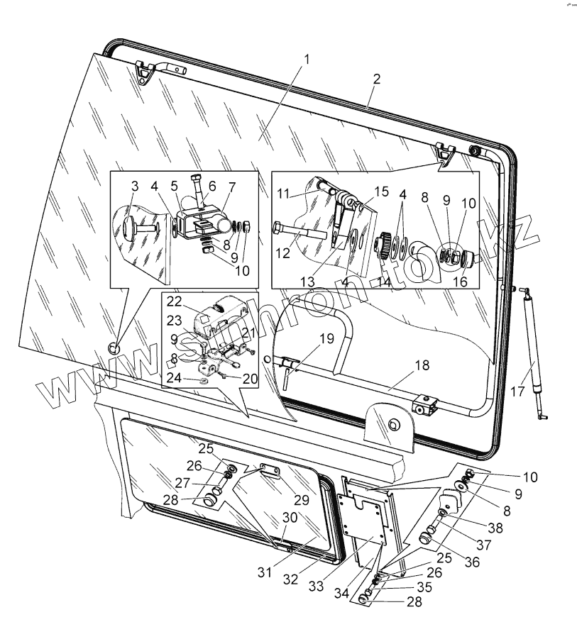 Каталог запасных частей к технике: МТЗ БЕЛАРУС 1502. Стекло заднее. Установка панели
