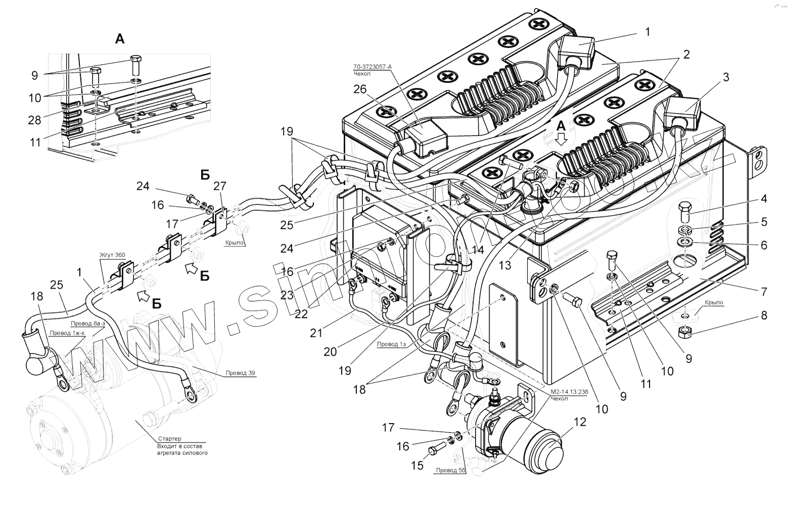 Каталог запасных частей к технике: МТЗ БЕЛАРУС 1502. Установка батарей аккумуляторных
