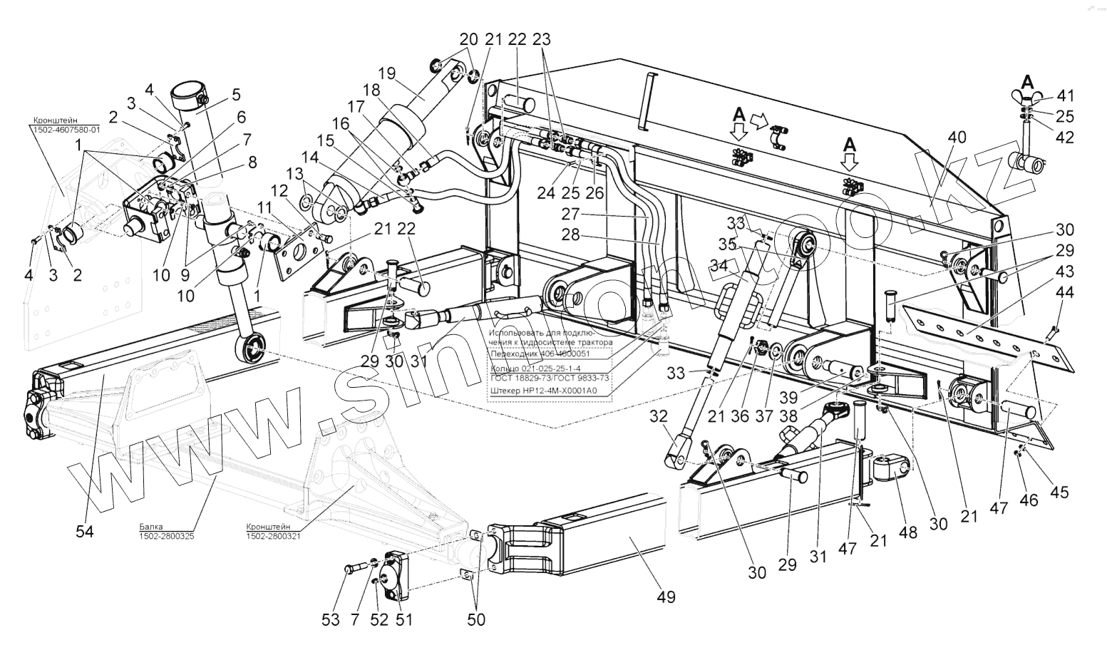 Каталог запасных частей к технике: МТЗ БЕЛАРУС 1502. Установка отвала (прямого). Вилка. Раскос