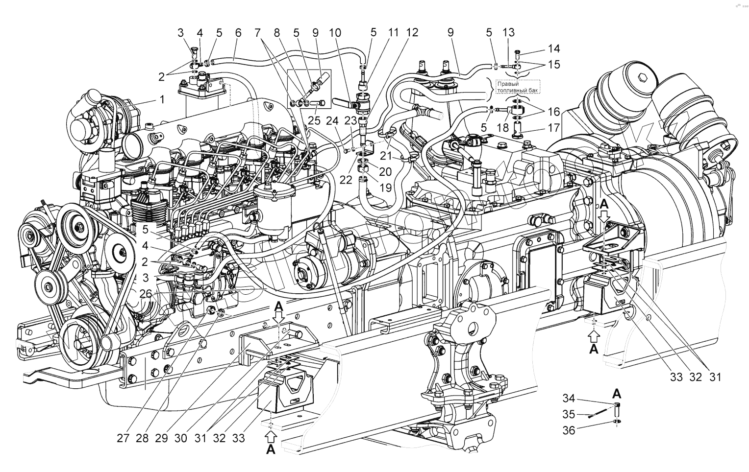 Каталог запасных частей к технике: МТЗ БЕЛАРУС 1502. Установка силовая. Топливопровод сливной. Топливопровод. Кран