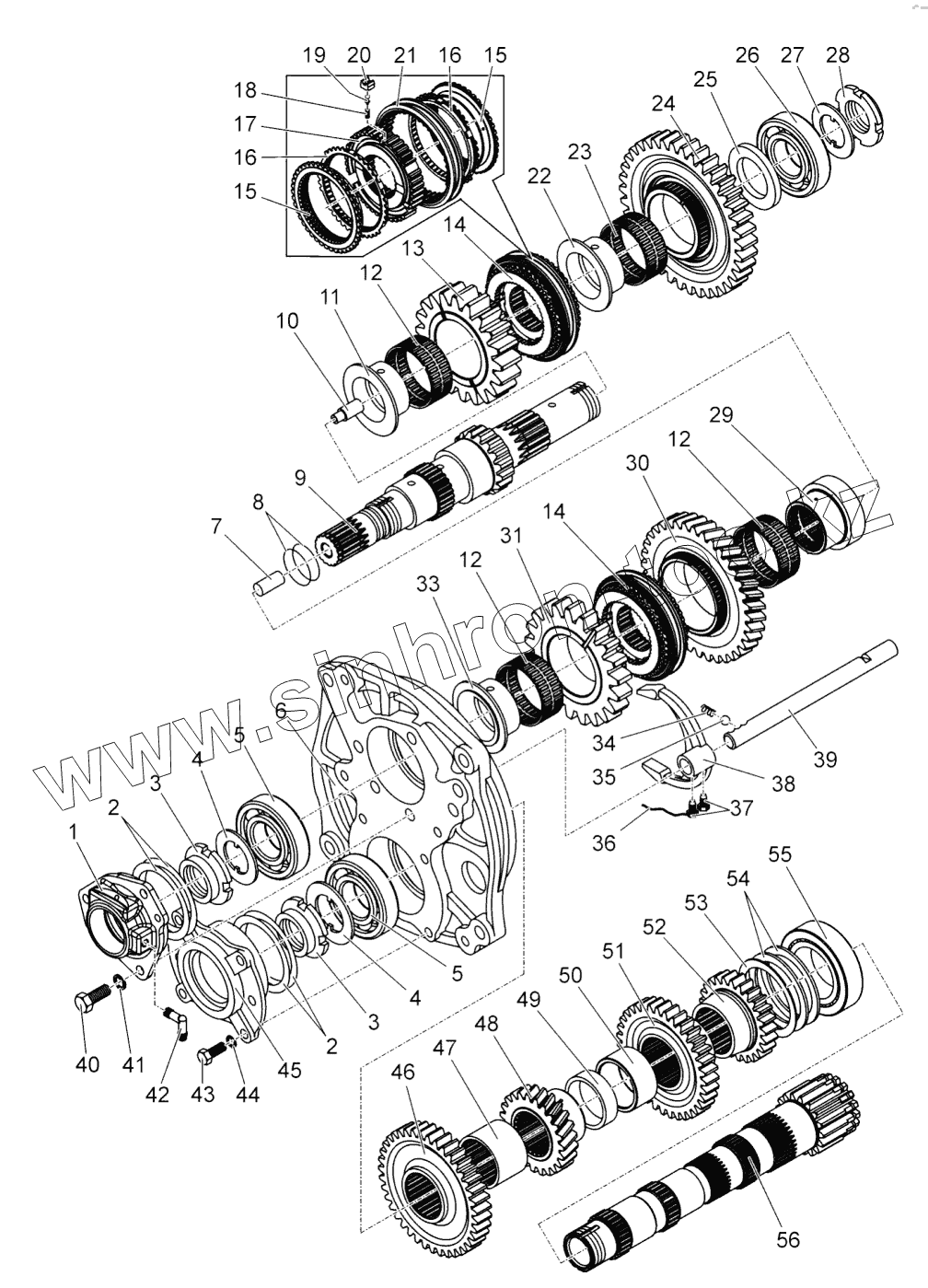 Каталог запасных частей к технике: МТЗ БЕЛАРУС 1502. Узел передач. Стакан. Синхронизатор. Вал промежуточный