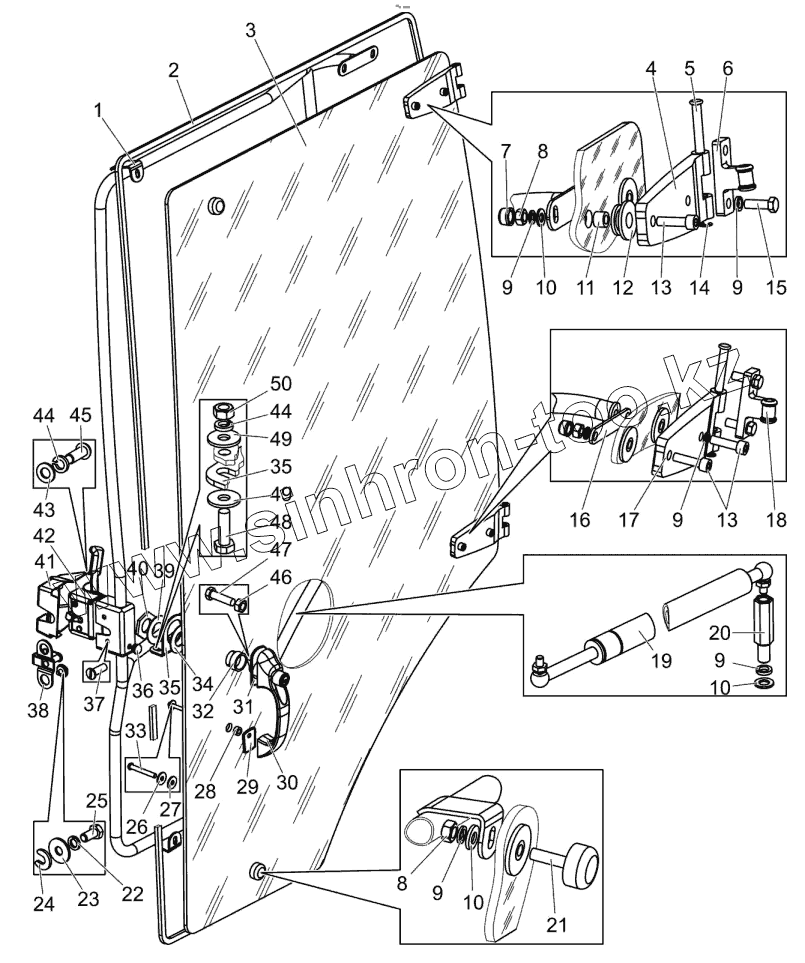 Каталог запасных частей к технике: МТЗ БЕЛАРУС 1502. Дверь левая. Стекло. Запорное устройство